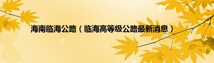 本文,海南临海公路,临海高等级公路最新消息到此就分享完毕,希望对大家有所帮助。