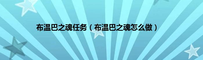 大家好,布温巴之魂任务,布温巴之魂怎么做很多人还不知道,现在让我们一起来看看吧!
