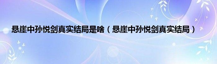 本文,悬崖中孙悦剑真实结局是啥,悬崖中孙悦剑真实结局到此就分享完毕,希望对大家有所帮助。