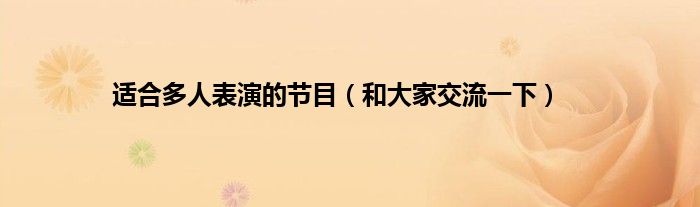 大家好,适合多人表演的节目,和大家交流一下很多人还不知道,现在让我们一起来看看吧!