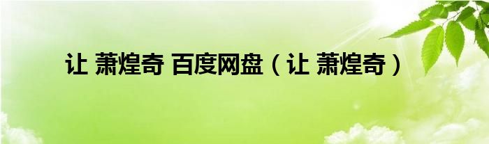 让 萧煌奇 百度网盘(让 萧煌奇)