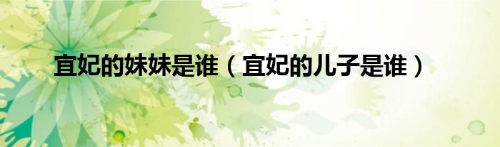 大家好,宜妃的妹妹是谁,宜妃的儿子是谁很多人还不知道,现在让我们一起来看看吧!