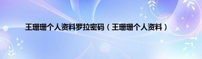 以上就是【王珊珊个人资料罗拉密码,王珊珊个人资料】相关内容。
