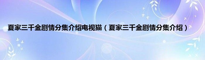 大家好,夏家三千金剧情分集介绍电视猫,夏家三千金剧情分集介绍很多人还不知道,现在让我们一起来看看吧!