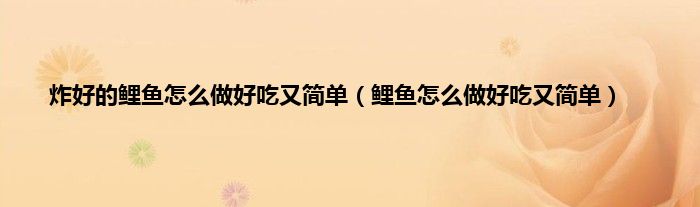 以上就是【炸好的鲤鱼怎么做好吃又简单,鲤鱼怎么做好吃又简单】相关内容。