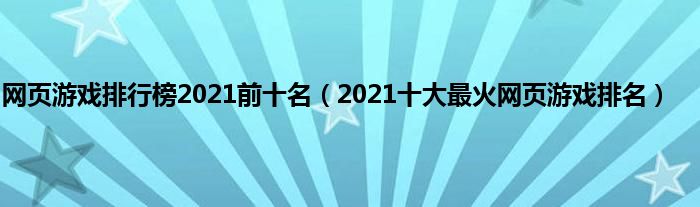 本文,网页游戏排行榜2021前十名,2021十大最火网页游戏排名到此就分享完毕,希望对大家有所帮助。