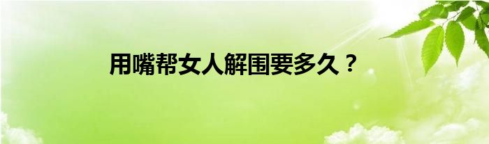 大家好,小问来为大家解答以上问题。用嘴帮女人解围要多久?这个很多人还不知道,现在让我们一起来看看吧!