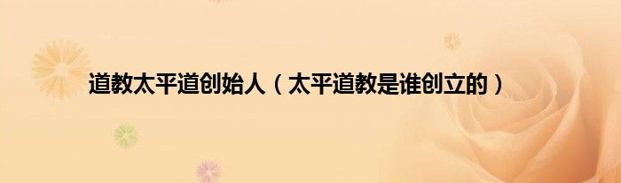 本文,道教太平道创始人,太平道教是谁创立的到此就分享完毕,希望对大家有所帮助。