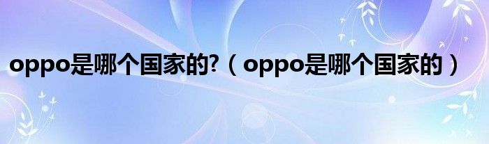 本文,oppo是哪个国家的?,oppo是哪个国家的到此就分享完毕,希望对大家有所帮助。