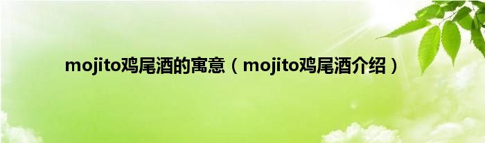 1、 莫吉托鸡尾酒的寓意是:“初恋”、“爱情”等等。此外,莫吉托还是最著名的朗姆酒调酒师之一。这是鸡尾酒。莫吉托鸡尾酒起源于古巴哈瓦那,具有浓郁的加勒比海风味。