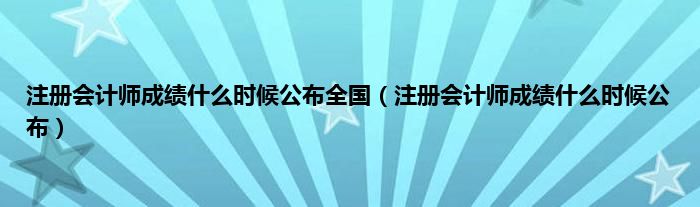 本文,注册会计师成绩什么时候公布全国,注册会计师成绩什么时候公布到此就分享完毕,希望对大家有所帮助。
