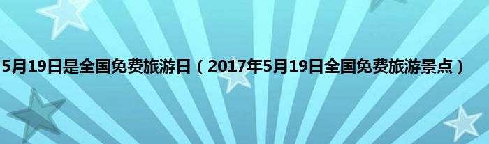 本文,5月19日是全国免费旅游日,2017年5月19日全国免费旅游景点到此就分享完毕,希望对大家有所帮助。