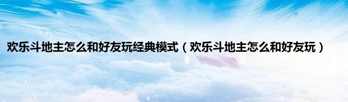 以上就是【欢乐斗地主怎么和好友玩经典模式,欢乐斗地主怎么和好友玩】相关内容。
