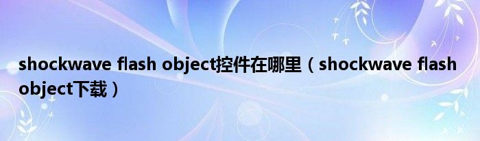 以上就是【shockwave flash object控件在哪里,shockwave flash object下载】相关内容。