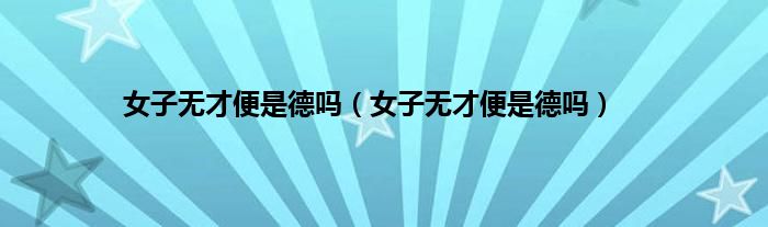 大家好,小问来为大家解答以上问题。女子无才便是德吗,女子无才便是德吗这个很多人还不知道,现在让我们一起来看看吧!