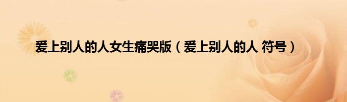 以上就是【爱上别人的人女生痛哭版,爱上别人的人 符号】相关内容。