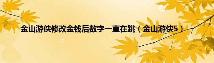 大家好,小问来为大家解答以上问题。金山游侠修改金钱后数字一直在跳,金山游侠5这个很多人还不知道,现在让我们一起来看看吧!
