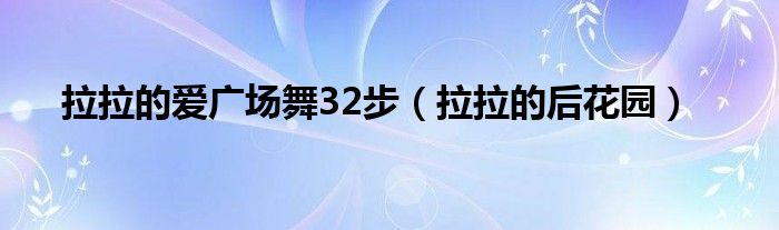 大家好,小问来为大家解答以上问题。拉拉的爱广场舞32步,拉拉的后花园这个很多人还不知道,现在让我们一起来看看吧!