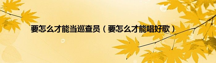 以上就是【要怎么才能当巡查员,要怎么才能唱好歌】相关内容。