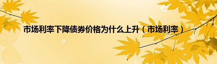 大家好,小问来为大家解答以上问题。市场利率下降债券价格为什么上升,市场利率这个很多人还不知道,现在让我们一起来看看吧!
