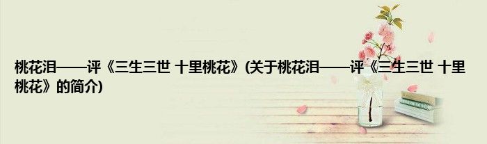 1、 《桃花泪——评《三生三世。