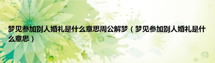 大家好,综合小编来为大家讲解下。梦见参加别人婚礼是什么意思周公解梦,梦见参加别人婚礼是什么意思这个很多人还不知道,现在让我们一起来看看吧!