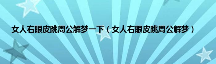大家好,综合小编来为大家讲解下。女人右眼皮跳周公解梦一下,女人右眼皮跳周公解梦这个很多人还不知道,现在让我们一起来看看吧!