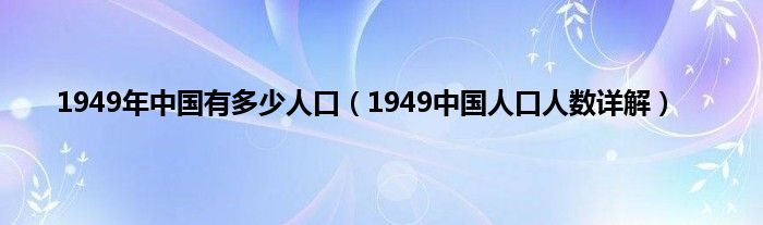 本文,1949年中国有多少人口,1949中国人口人数详解到此就分享完毕,希望对大家有所帮助。