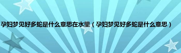 大家好,综合小编来为大家讲解下。孕妇梦见好多蛇是什么意思在水里,孕妇梦见好多蛇是什么意思这个很多人还不知道,现在让我们一起来看看吧!