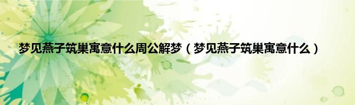 本文梦见燕子筑巢寓意什么周公解梦,梦见燕子筑巢寓意什么到此分享完毕,希望对大家有所帮助。