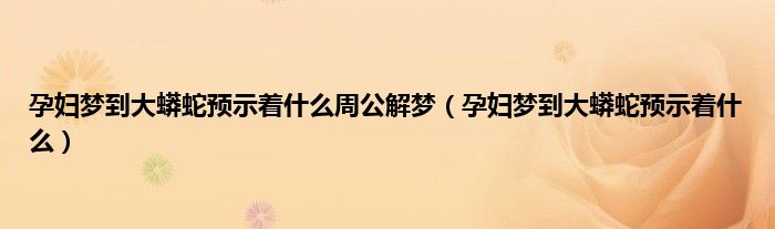 一、孕妇梦到大蟒蛇的梦境解析: 孕妇梦到大蟒蛇,预示着近期梦者在事业中可能会碰到难缠的人,提示得此梦者须懂得与别人交涉的道理,切不可过于自我,礼仪相让者则事业可成。