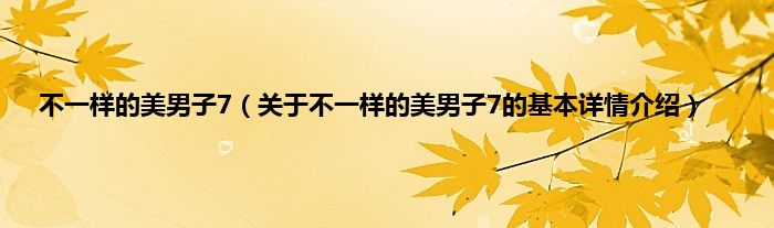 本文关于不一样的美男子7的基本详情介绍就讲解完毕,希望对大家有所帮助。