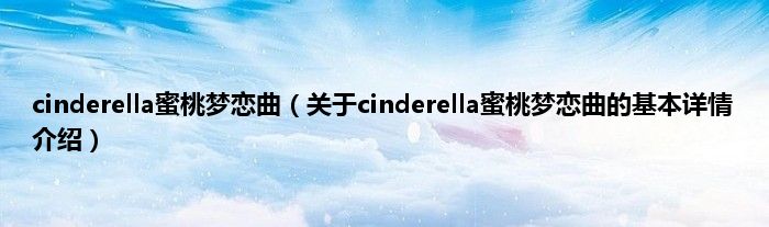 本文关于cinderella蜜桃梦恋曲的基本详情介绍就讲解完毕,希望对大家有所帮助。
