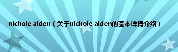本文关于nichole alden的基本详情介绍就讲解完毕,希望对大家有所帮助。