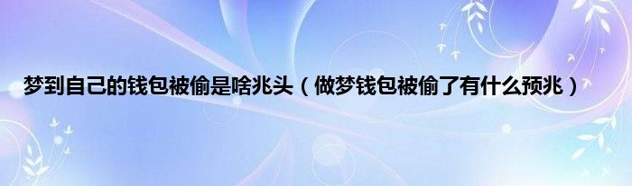 本文梦到自己的钱包被偷是啥兆头,做梦钱包被偷了有什么预兆到此分享完毕,希望对大家有所帮助。