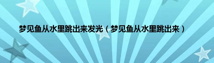 大家好,综合小编来为大家讲解下。梦见鱼从水里跳出来发光,梦见鱼从水里跳出来这个很多人还不知道,现在让我们一起来看看吧!