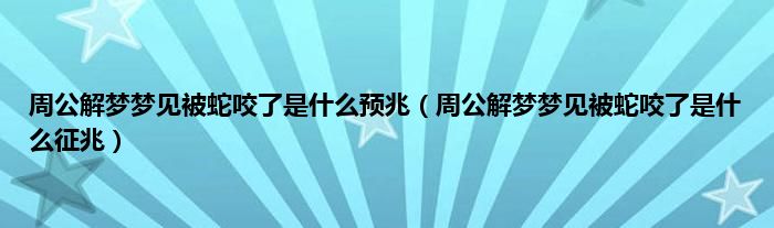 本文周公解梦梦见被蛇咬了是什么预兆,周公解梦梦见被蛇咬了是什么征兆到此分享完毕,希望对大家有所帮助。