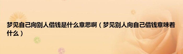 本文梦见自己向别人借钱是什么意思啊,梦见别人向自己借钱意味着什么到此分享完毕,希望对大家有所帮助。