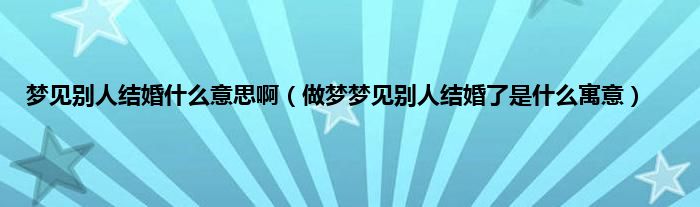大家好,综合小编来为大家讲解下。梦见别人结婚什么意思啊,做梦梦见别人结婚了是什么寓意这个很多人还不知道,现在让我们一起来看看吧!