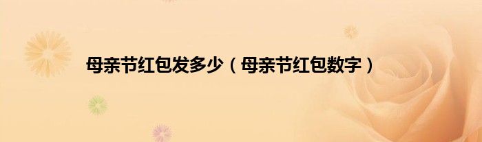 大家好,综合小编来为大家讲解下。母亲节红包发多少,母亲节红包数字这个很多人还不知道,现在让我们一起来看看吧!