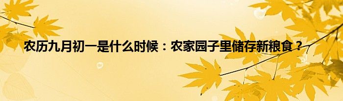 本文农历九月初一是什么时候:农家园子里储存新粮食?到此分享完毕,希望对大家有所帮助。