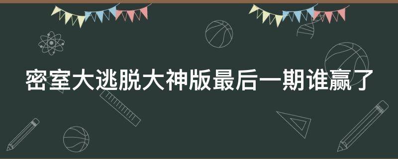 密室大逃脱大神版最后一期是蒲熠星赢了,后来他把文韬也变成了卧底,最终获得胜利。《密室大逃脱》是由芒果TV推出的实景解密体验秀。包括《密室大逃脱第一季》《密室大逃脱第二季》《密室大逃脱第三季》《密室大逃脱第四季》。《密室大逃脱第一季》常驻嘉宾有杨幂、邓伦、魏大勋、黄明昊、谢依霖、张国伟,于2019年3月30日中午12点上线。《密室大逃脱第二季》常驻嘉宾有杨幂、邓伦、黄明昊、大张伟、郭麒麟,于2020年6月30日中午12点上线。《密室大逃脱第三季》常驻嘉宾有杨幂、邓伦、黄明昊、大张伟、张国伟,于2021年5月6日中午12点上线。《密室大逃脱第四季》常驻嘉宾有杨幂、黄明昊、大张伟、张国伟、彭昱畅、周笔畅,于2022年7月8日中午12点上线。