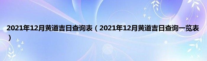 本文2021年12月黄道吉日查询表,2021年12月黄道吉日查询一览表到此分享完毕,希望对大家有所帮助。
