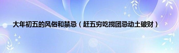 大家好,综合小编来为大家讲解下。大年初五的风俗和禁忌,赶五穷吃搅团忌动土破财这个很多人还不知道,现在让我们一起来看看吧!