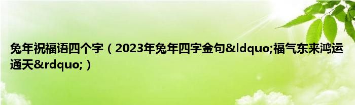 大家好,综合小编来为大家讲解下。兔年祝福语四个字,2023年兔年四字金句“福气东来鸿运通天”这个很多人还不知道,现在让我们一起来看看吧!