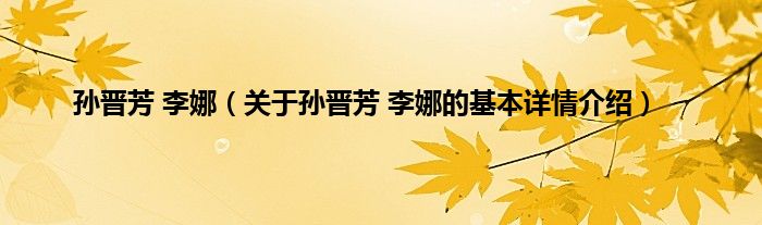 本文关于孙晋芳 李娜的基本详情介绍就讲解完毕,希望对大家有所帮助。