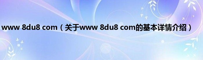 本文关于www 8du8 com的基本详情介绍就讲解完毕,希望对大家有所帮助。