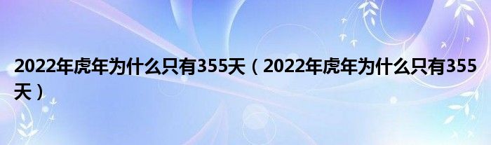 大家好,综合小编来为大家讲解下。2022年虎年为什么只有355天,2022年虎年为什么只有355天这个很多人还不知道,现在让我们一起来看看吧!