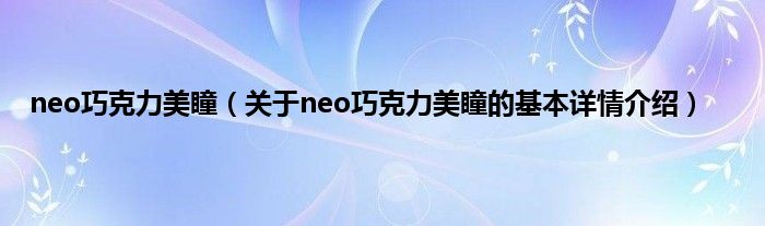 本文关于neo巧克力美瞳的基本详情介绍就讲解完毕,希望对大家有所帮助。