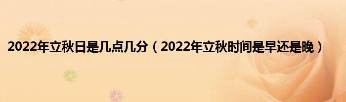 大家好,综合小编来为大家讲解下。2022年立秋日是几点几分,2022年立秋时间是早还是晚这个很多人还不知道,现在让我们一起来看看吧!